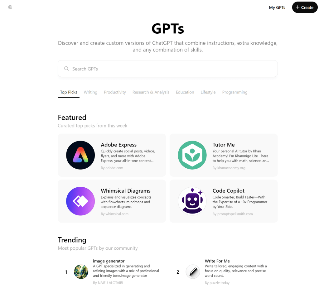 The GPT marketplace also makes sense as it solves the second problem and makes it easy for anyone to share their GPTs with others. If we create a GPT, it can be easily published to the marketplace to make it discoverable by others.