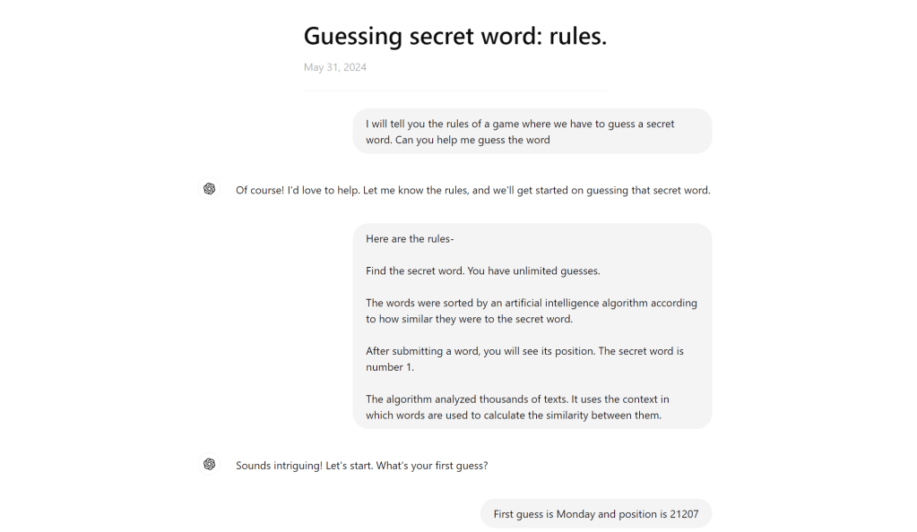 - Players can make unlimited guesses, and after each guess, they will be shown the position of the word they submitted in the AI’s ranking.