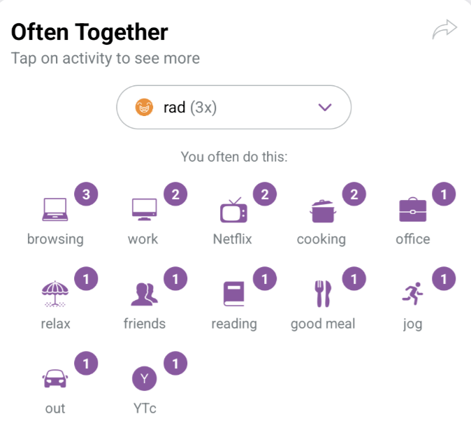 For example it shows me the activities I do often together on my ‘Rad’ days.