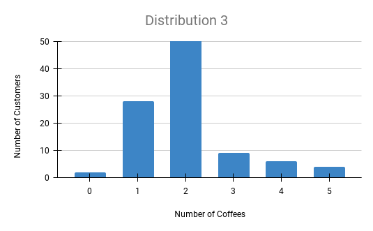 The most likely scenario is Distribution 3, where most people have one or two coffees daily. The table below shows the cost to serve as a percentage of revenue for each distribution: