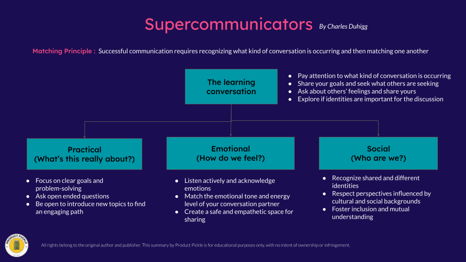As someone who is neurodiverse, I’ve often struggled with understanding subtle conversational cues and predicting the direction of a discussion. After reading the book, I found Duhigg’s framework as one of the practical frameworks to look at how we make conversations with others. Here are the key insights from the book: